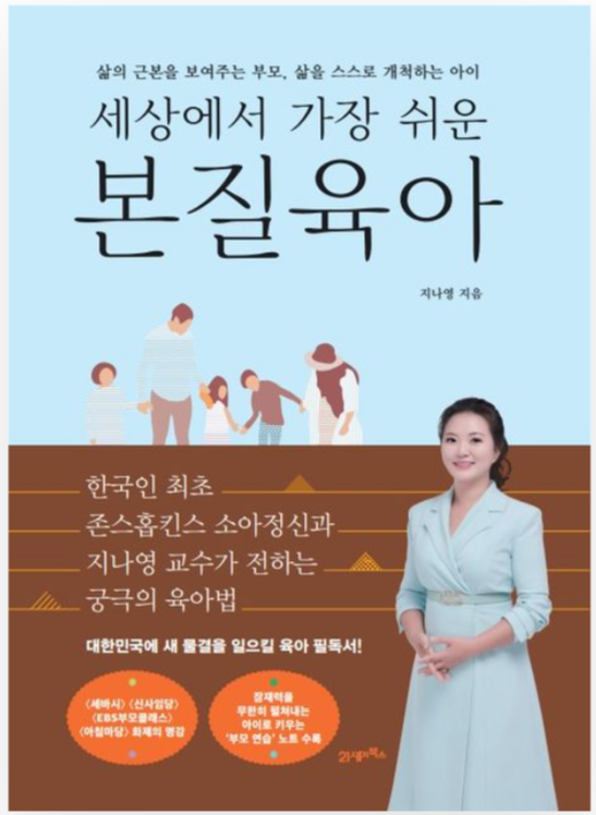 지나영 교수는 한국인 최초로 존스홉킨스대학교 소아정신과 교수가 된 소아정신과 전문의이다. 저자는 의사이자 교수로서 치료와 연구, 교육에 전념해 왔으며, 아이의 본질을 이해하고, 각자의 기질에 맞는 육아법을 제시하는 데 주력해 왔다. 지나영 저자는 [세상에서 가장 쉬운 본질육아]에서 아이의 기질과 본질을 이해하고, 이를 존중하는 육아법을 제시한 책이다. 그 외 [마음이 흐르는 대로]에서 삶의 어려움 속에서도 마음의 흐름을 따라가는 법을 담은 에세이이며, [들숨에 긍정 날숨에 용기]에서는 청소년들에게 긍정과 용기의 메시지를 전달하였다. 또 [코어 마인드]에서는 내면의 힘을 키워 삶을 주도적으로 살아가는 방법을 안내한 책이다.